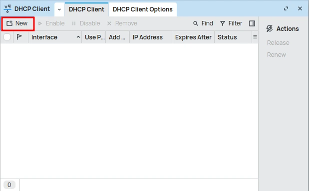With WinBox open and connected to your MikroTik, the next step is to locate the DHCP client configuration section.